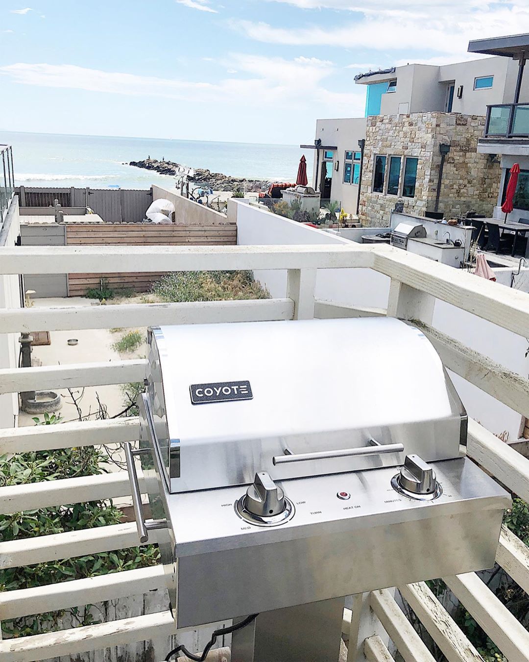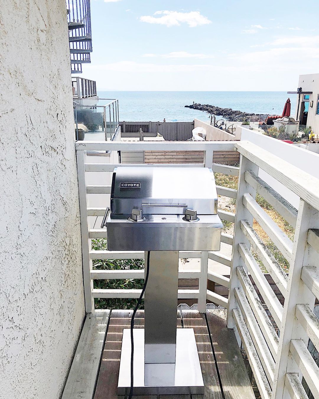 Leslie Saeta, founder of the engaging Instagram account @my100yearoldhome, recently featured the Coyote Electric Grill on a pedestal in a beautiful oceanside setting. As noted in the post, “We have a balcony off our kitchen at the beach house and I finally found the right sized barbecue that fits.” The Coyote Electric Grill is 18” wide and has a 156 square inch cooking area. I love that it has a 60 minute safety timer with a surge protector too.” The compact Electric Grill on a Pedestal makes holiday grilling possible in smaller unique spaces. Leslie adds,”It’s time to be thinking about your Memorial Day plans. Make sure you are all set for lots of grilling outdoors. I think I might have some barbecue volunteers with this amazing view!”